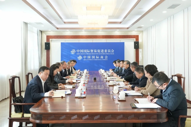 倪真與中國(guó)貿(mào)促會(huì)黨組書記、會(huì)長(zhǎng)任鴻斌會(huì)談